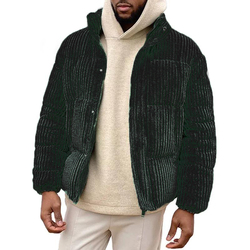Pardessus d'hiver en velours côtelé pour hommes de grande taille à la mode Veste en coton pour hommes de couleur unie à col montant
